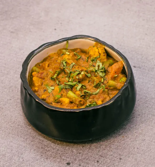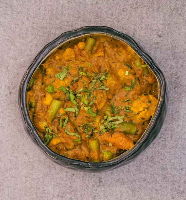 An array of vegetables sautéed in a flavourful blend of onion, tomato, coriander and spices.
